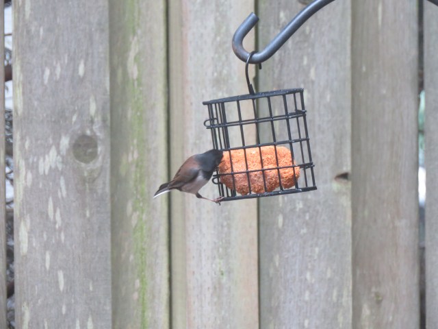 And one of our male Juncos. We have a huge flock of those Juncos, and they are getting pretty rambunctious, chasing each other all around the yard.