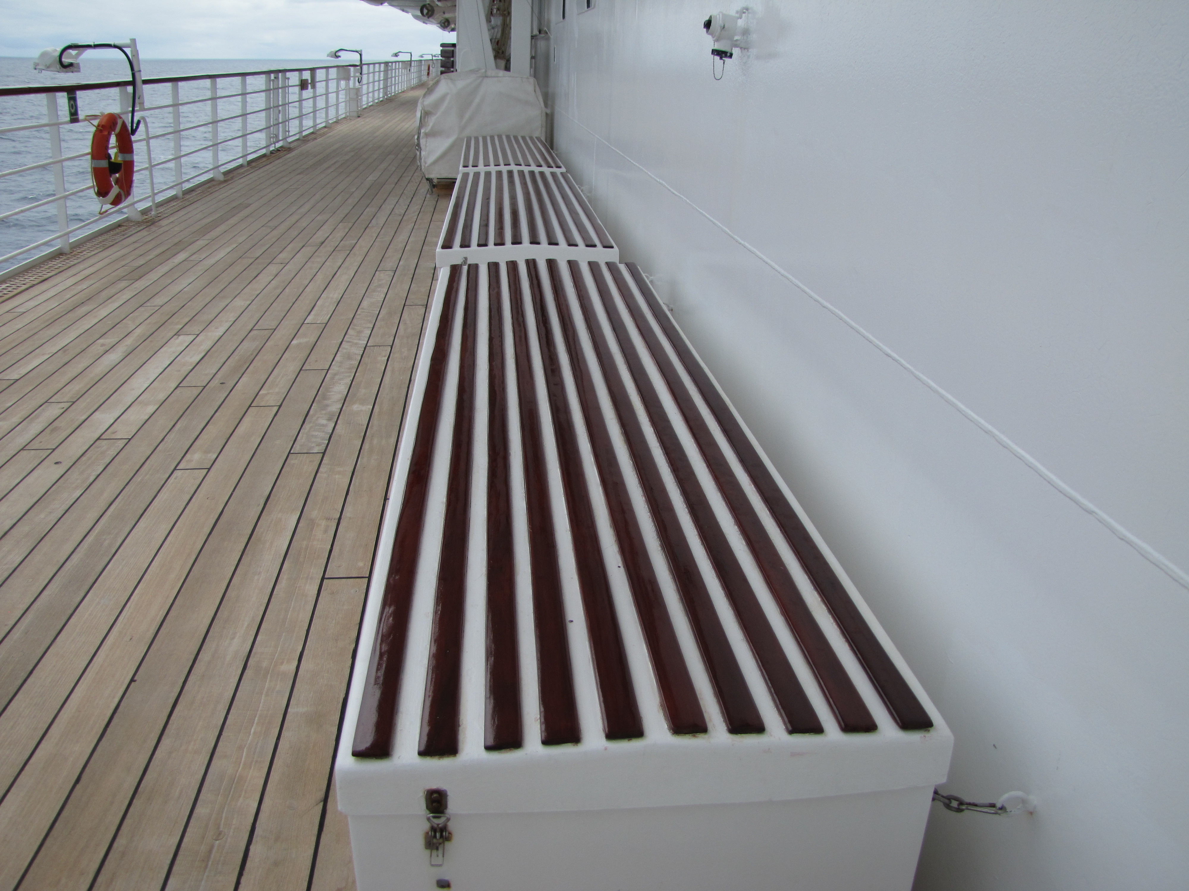 And on our cruise ship to Hawaii, the surfaces of the lockers holding life vests were a perfect illustration of perspective. If I were an art teacher, I would show this to the class. The railings, and the planks in the deck are also very geometrical, and show perspective.