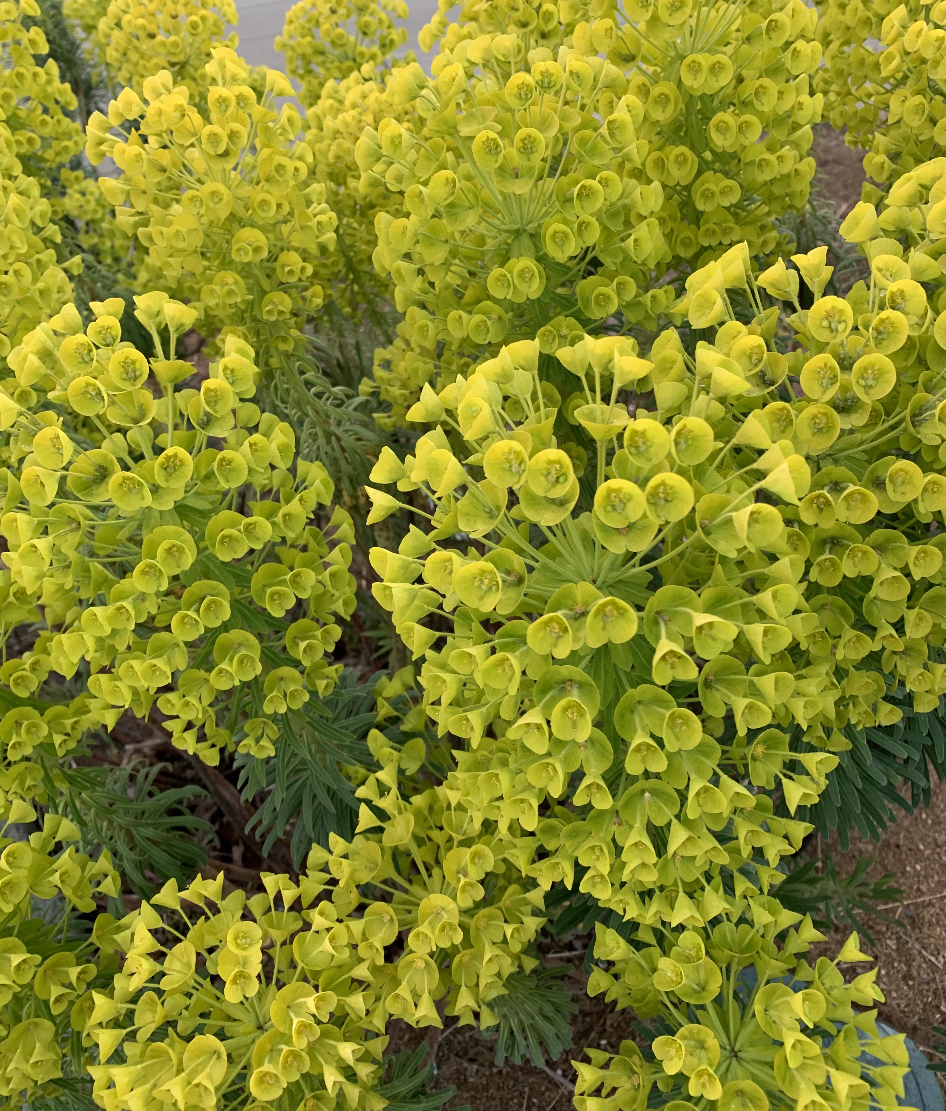 I have ten brown thumbs, so I don’t do much with plants. But I do pay close attention to the plants and flowers around me, and I especially love symmetry. These Euphorbia were planted at a local shopping center, and their color just blew me away.