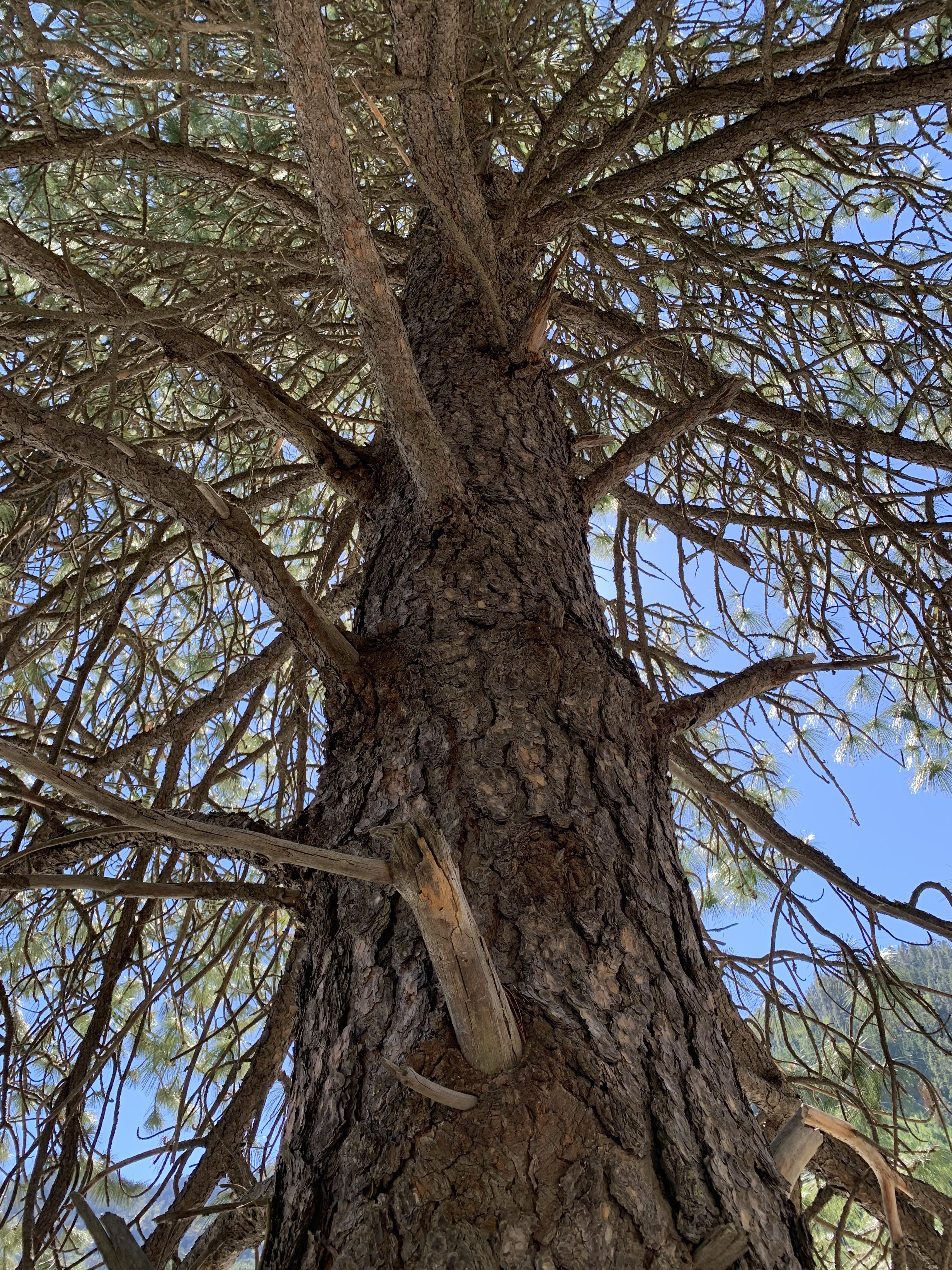 Near an old dam, I stood under a large pine tree to take pictures. I wondered how old that tree was. Looking up.