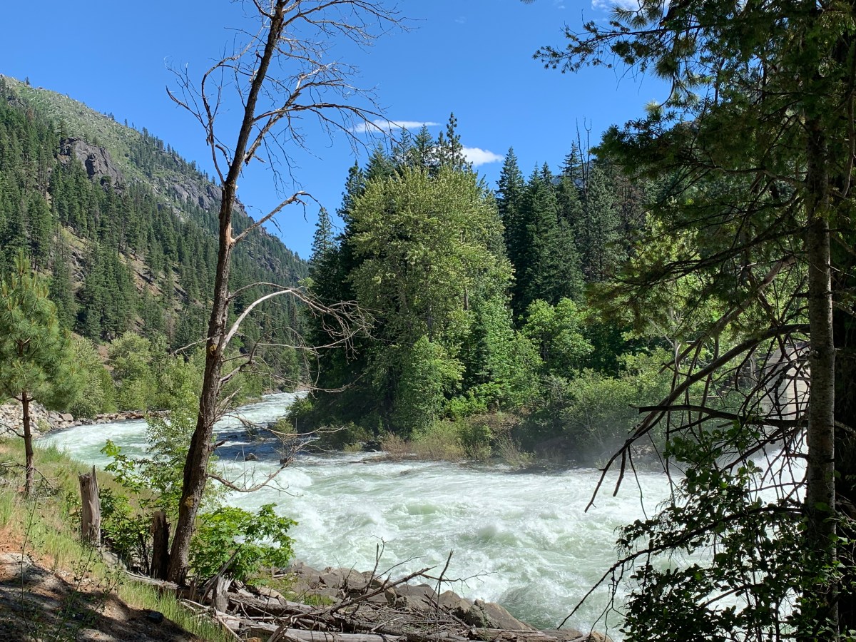 We went back to Glacier last year on our way home from South Dakota, and the weather was much nicer. The valley right below the above vantage-point was bright, sunny, and very green! That’s the Flathead River.