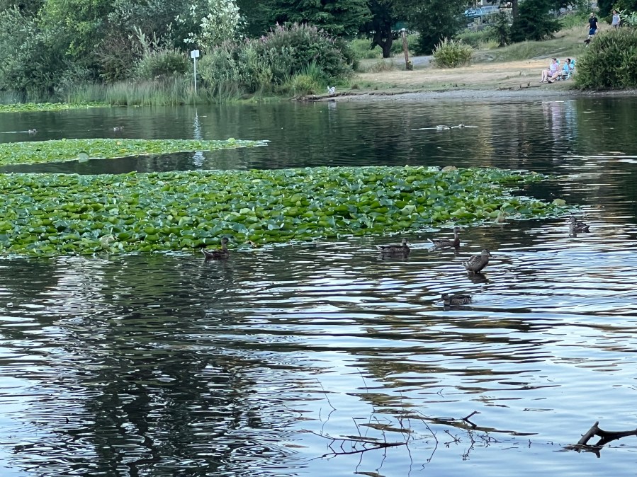 On July 28, I packed a picnic dinner, and went down to Silver Lake Park to watch the kids and the ducks and geese swim. It was a beautiful, warm evening. The kids were having lots of fun diving off the dock and yelling.
