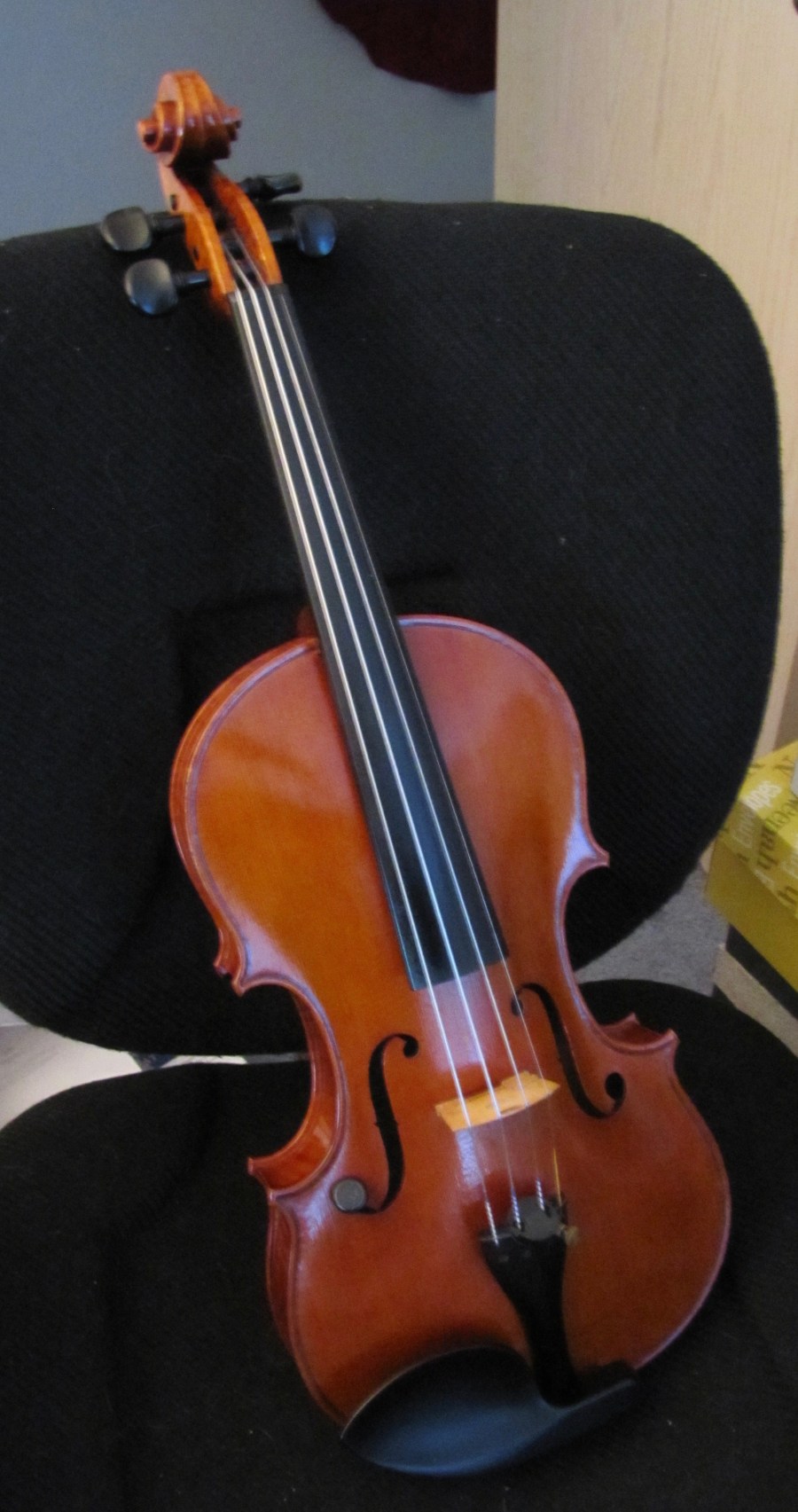 At music camp in 1987, a young local violin-maker brought some of his instruments for the campers to try out. I tried out one, and really liked it. When I returned home, I contacted my teacher, and we went to his shop to check out the instrument I liked. She played it, and was quite impressed with how it sounded. She had an old Italian violin, and she told us that the new one sounded a lot like her old one. My thought at the time was “Even Stradivari needed to start somewhere-when he was a young maker just starting out, his instruments were all new and he had no established reputation. He needed to persuade violinists to play and buy his instruments, to earn his reputation”. So I bought the new instrument, and have been playing it and enjoying it ever since.