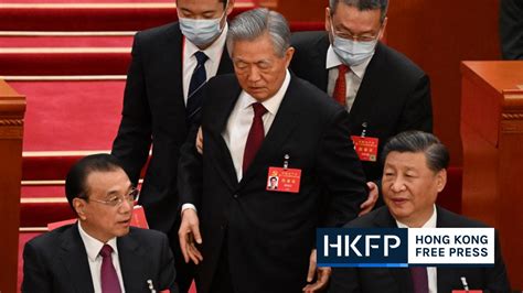 In the commotion, Mr. Xi leaned toward Mr. Hu and appeared to speak with him, pulling back a document Mr. Hu set his hand upon. Mr. Hu was ushered off the center dais, briefly looking back at Mr. Xi and patting outgoing Premier Li Keqiang on the shoulder as he walked out, unsupported.
