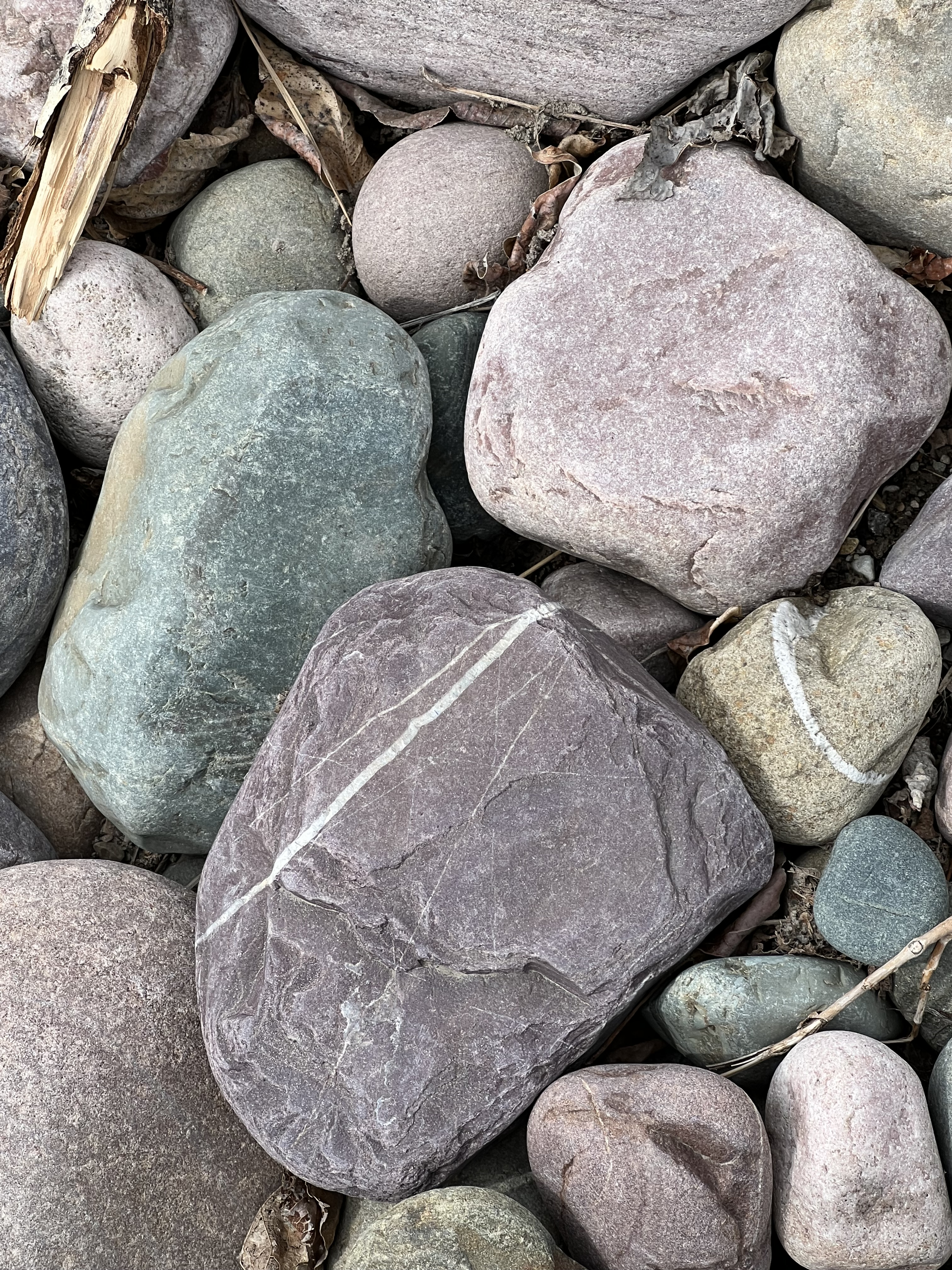 These rocks, formerly part of the Rocky (!) Mountains, are now on the banks of the Clark Fork River in Missoula, Montana.
