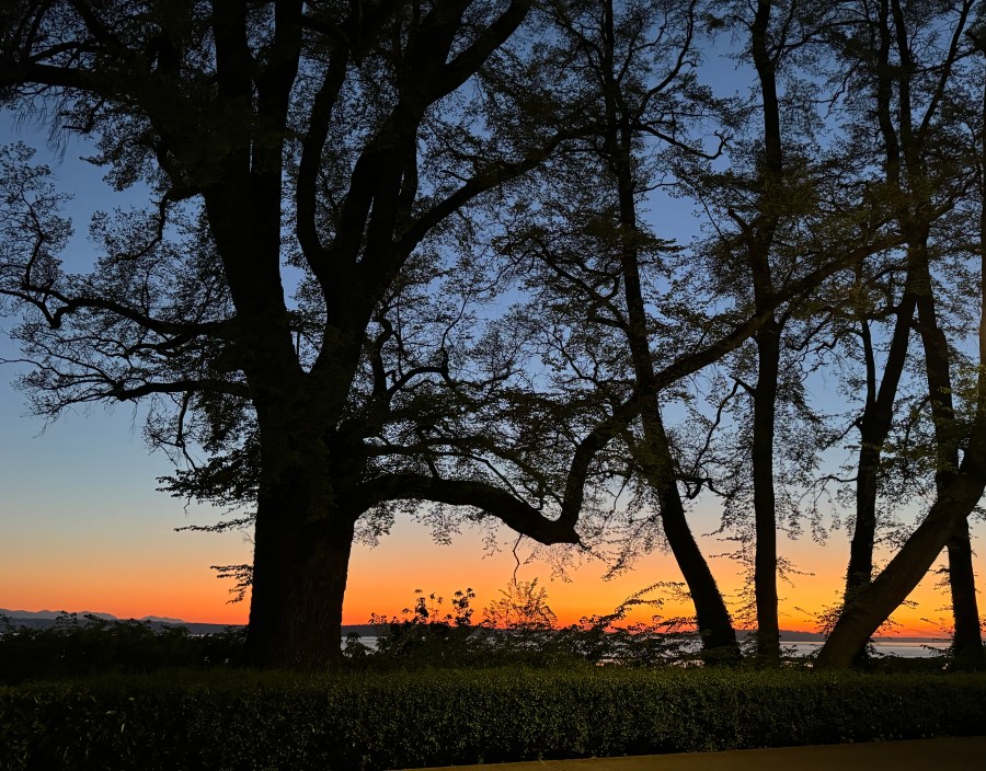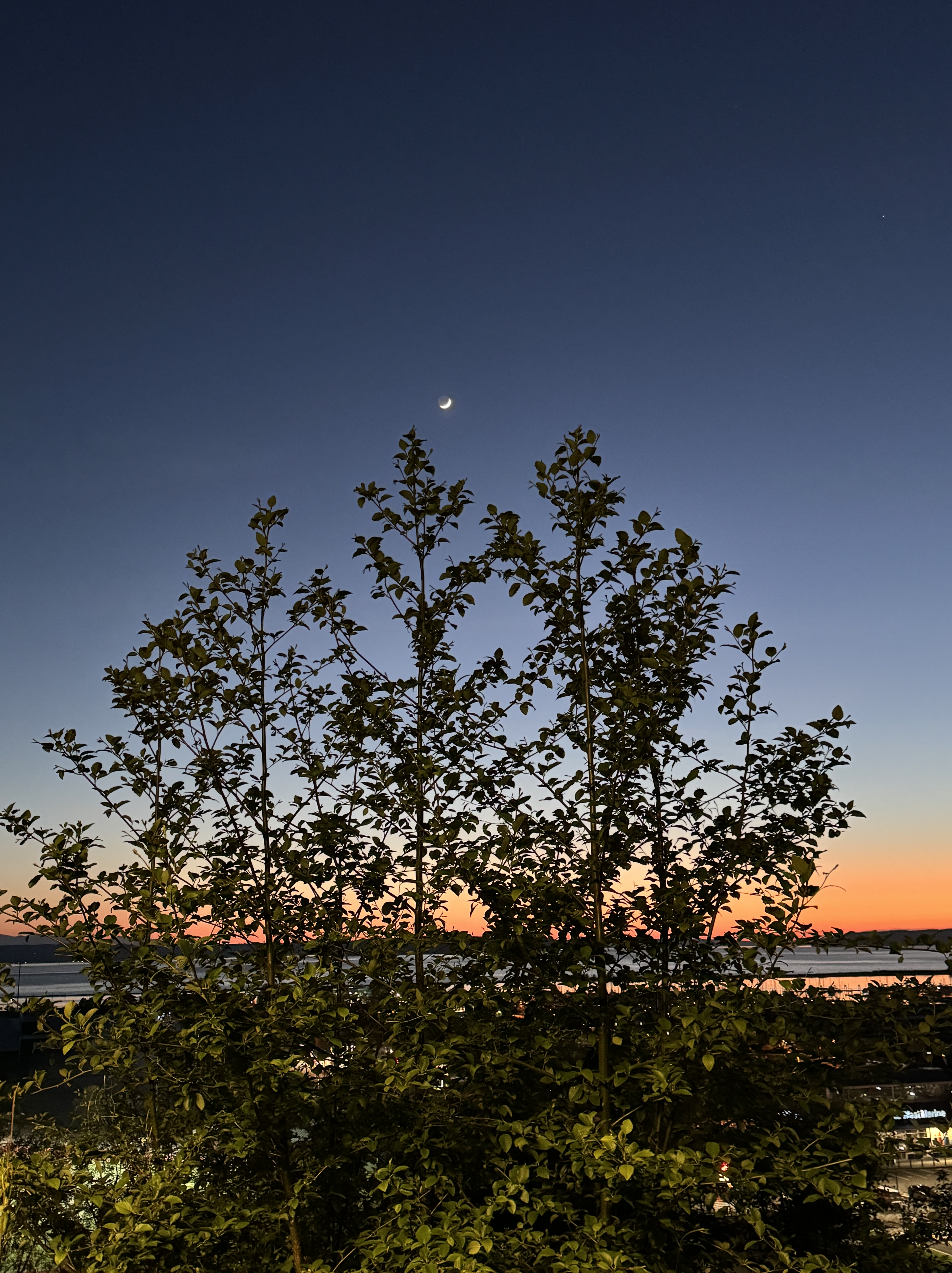 Our experience was somewhat different. We drove up to Grand Avenue Park in Everett, which has an expansive view of the Everett waterfront and the Marina. We got there right at sunset, and here is what it looked like.