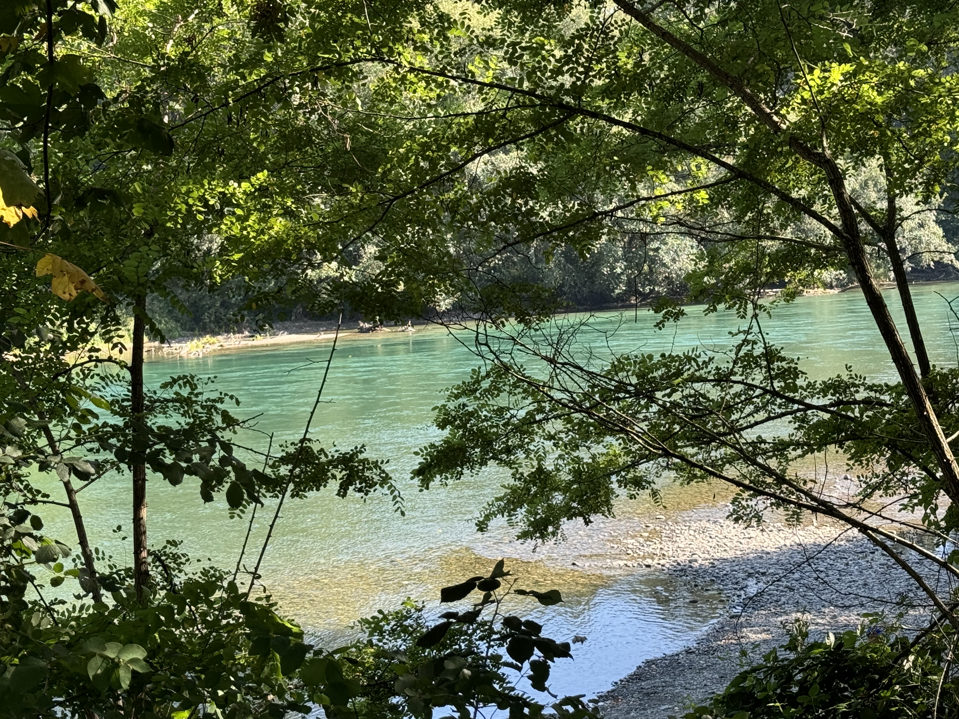 My regular readers will know that one of our favorite day trips from our home in Everett, Washington is the drive up to North Cascades National Park Diablo Lake Overlook. The highway (Washington 20) mostly parallels the Skagit River, which is the primary source of hydroelectric power for the Seattle area. On this trip, our first stop was the Howard Miller Steelhead Park in the town of Rockport. We found a bench, and ate our lunch overlooking the river. Since I am wearing a walking boot, nursing a torn tendon, I couldn’t do much walking, so I had to take my photos from our bench, through the trees.