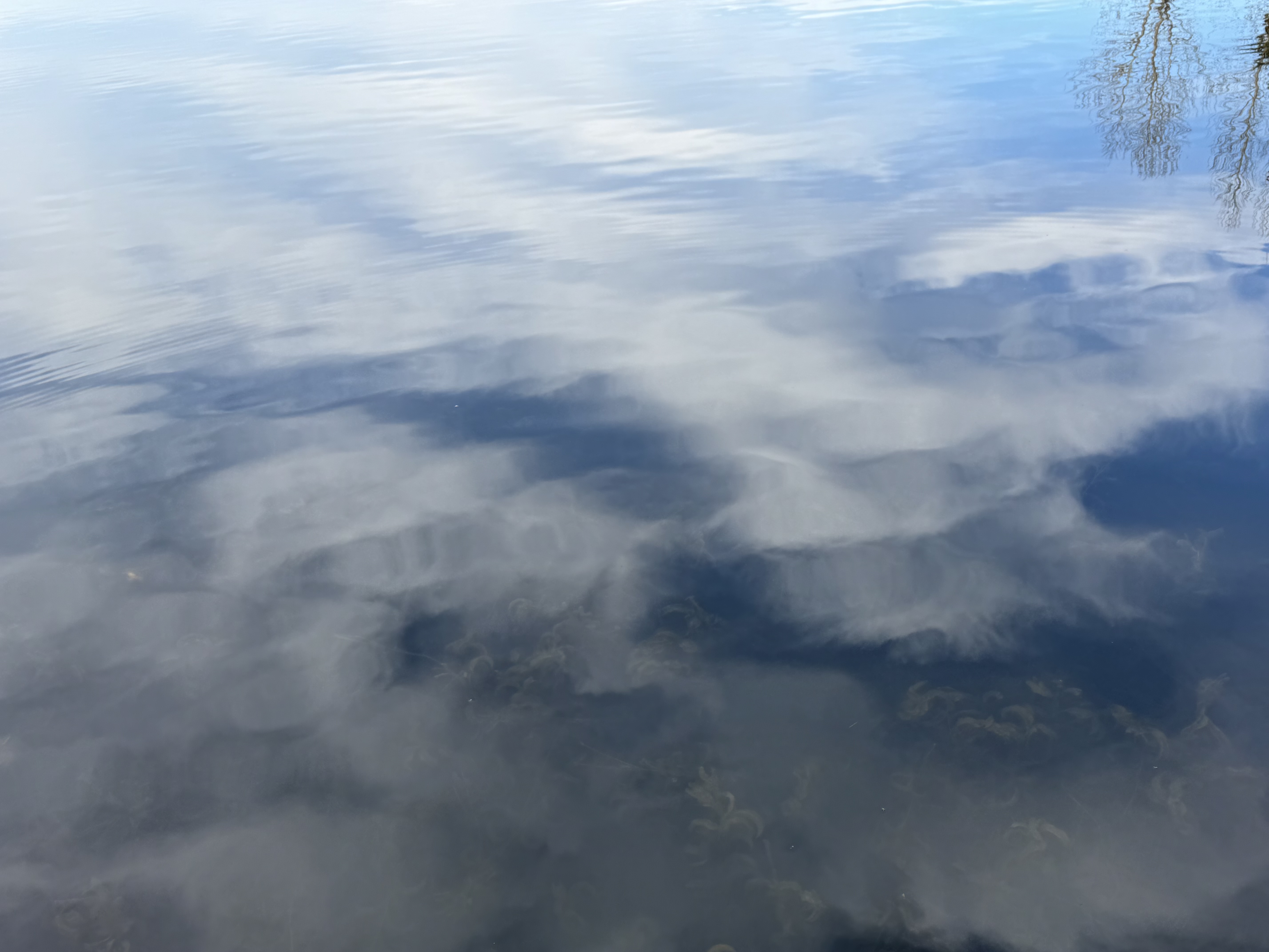 The clouds overhead made an interesting reflection, and a tiny bit of tree in the upper right corner.
