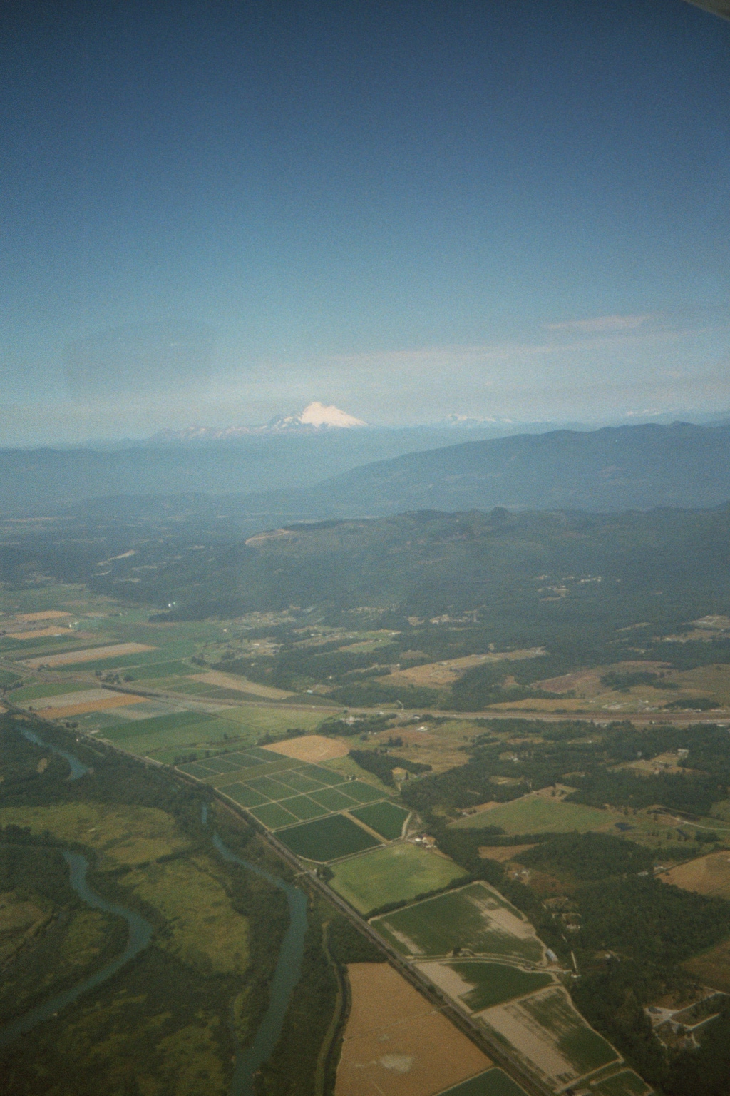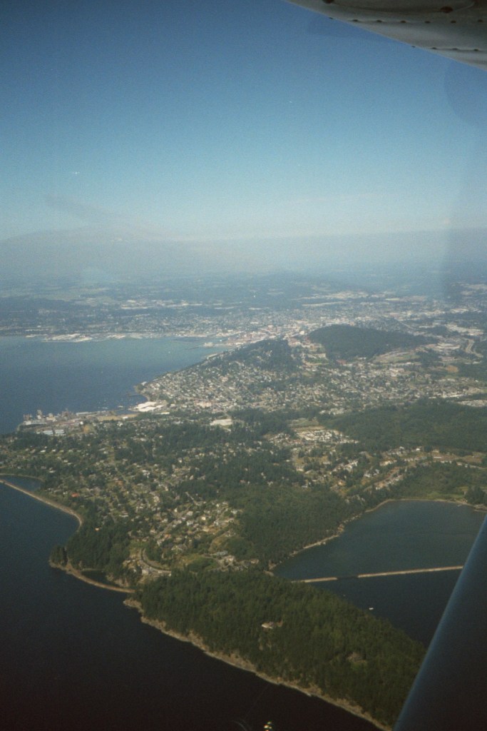 In August of 2001, just after I started dating my now-husband, he rented a small airplane, and we flew from Everett to Friday Harbor in the San Juan Islands. Here are some of the pictures I took from the co-pilot seat in the Cessna 182, and on the ground.