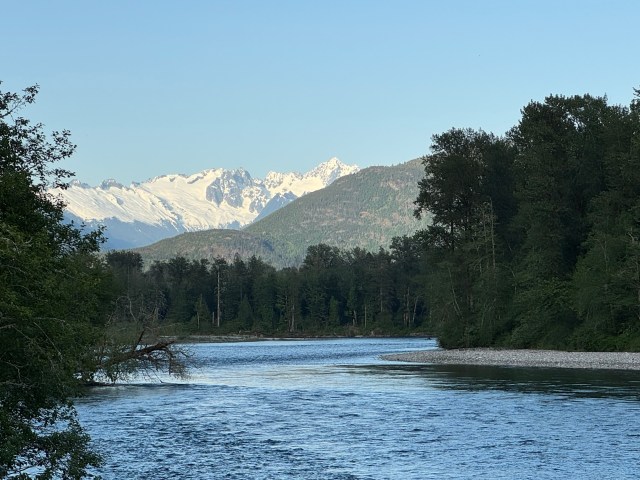 This photo of the Skagit River near Rockport, Washington was taken in the late afternoon. Despite the noise of highway traffic, as I stood there watching the river flow by, it was very calming. I have always loved the sound of running water.