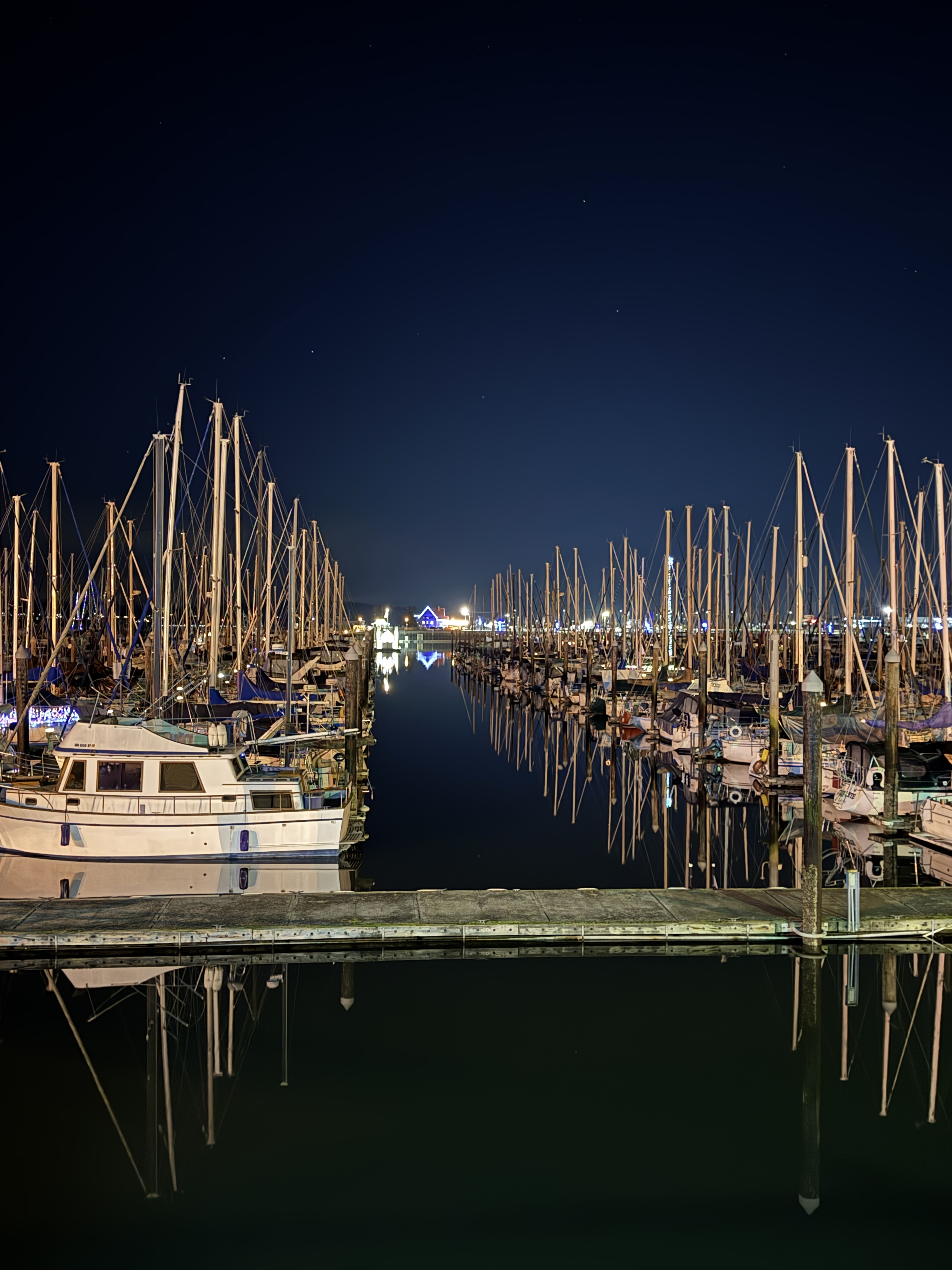 Well, here they are, and you be the judge! I rested my elbows on the wall at about chest level, and that was enough to make my hands steadier. What do you think? Taken with my iPhone 15 Pro. It was about 37 degrees, with no wind to speak of, so the reflections of the boats added depth.