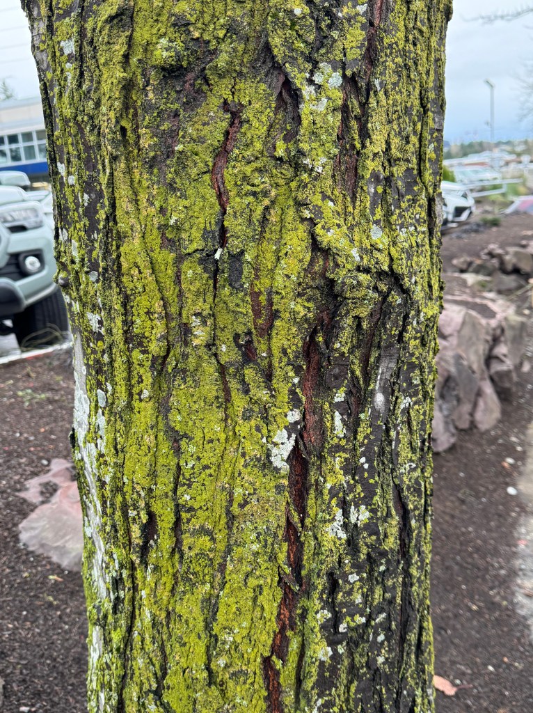 This tree is on the dealer’s property. See the rocks in the background?