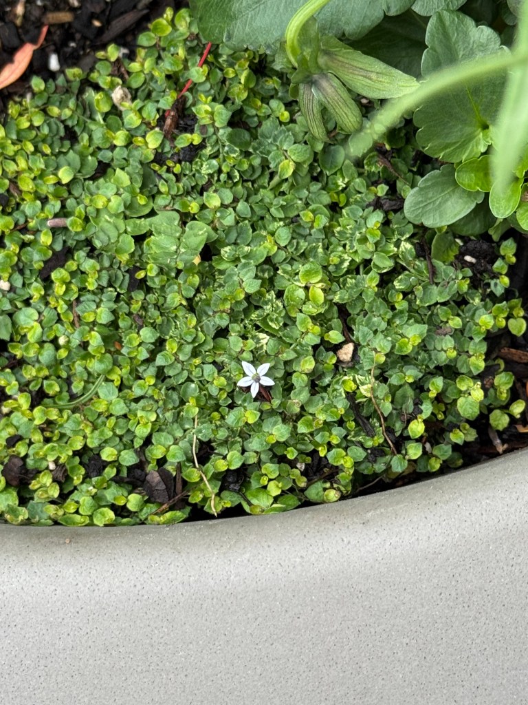 One tiny little white star of a flower.