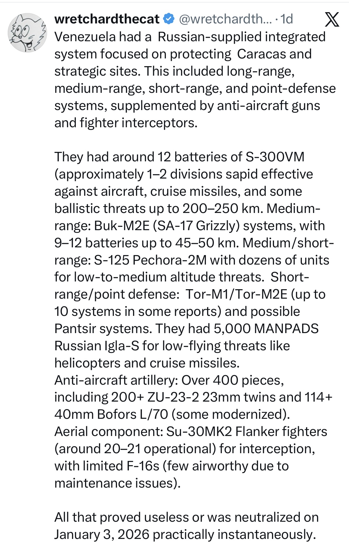 Collateral damage to Iran and Communist China, who were heavily invested in Venezuela. Their oil now belongs to America. China is embarrassed that it was so easy for us to take out their “invincible” air defense systems.