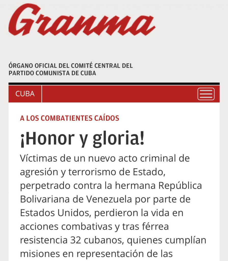 What They Won’t Tell You About the Maduro Raid The Venezuelan regime’s apologists, on both the left and the right, would have you believe the U.S. violated the sovereignty of a legitimate government. But now even Cuba’s own state-run newspaper is admitting that it was its own military officials who were killed at Maduro’s compound during his apprehension this weekend. Thirty-two colonels, majors, captains, lieutenants, soldiers. Officers from the secret police and armed forces. All men. Not a single one was a civilian. All were mercenaries there to prop up an illegitimate dictator who had been soundly defeated in the last election and aid in the continued oppression of the Venezuelan people.
