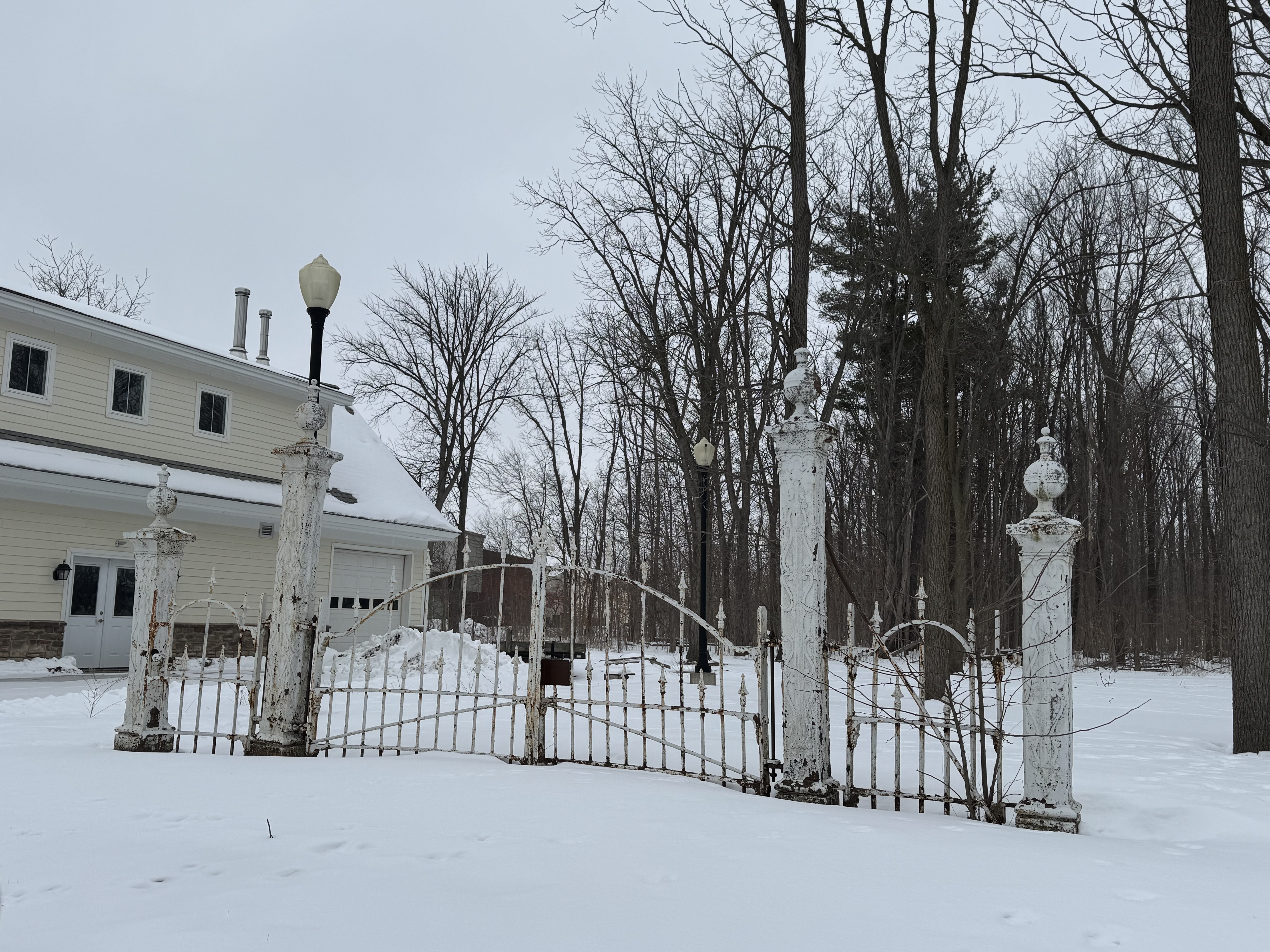 The piece of property is about five acres, and includes this little gate (with no attached fence) in back. It, too, is an interesting design.