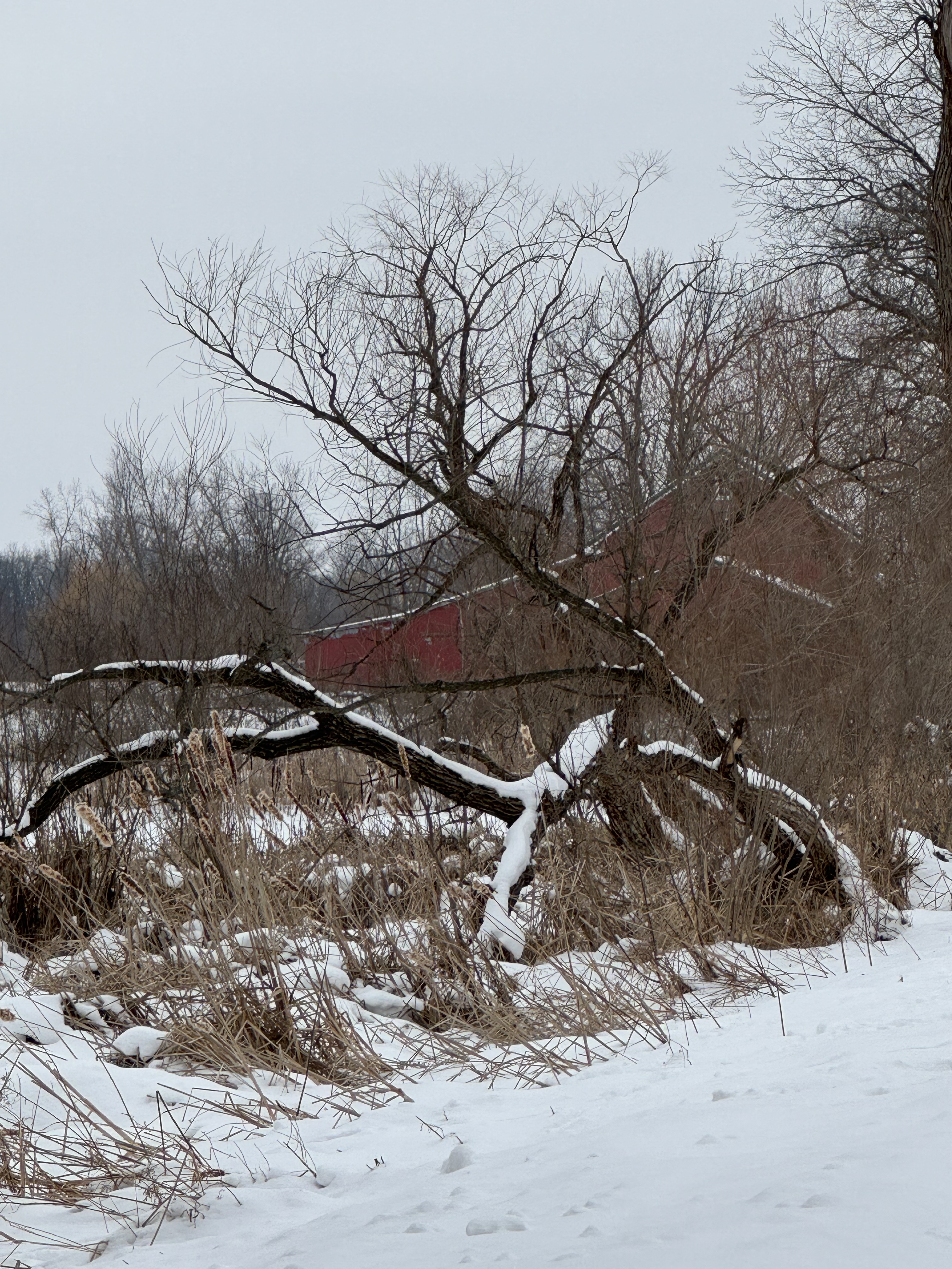 Downed tree, barn.