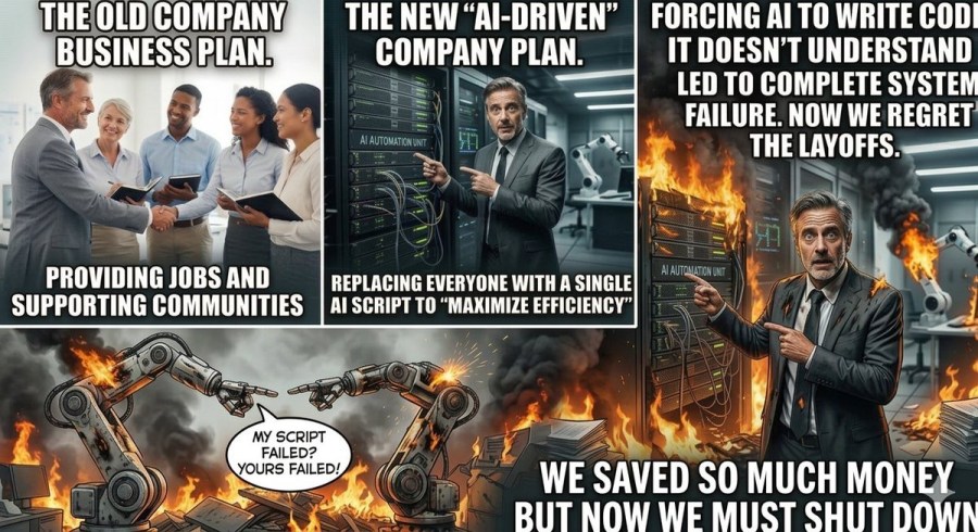 I have already told my readers that no part of this blog, except for some AI-generated memes, is made or edited by an AI program. This week, Amazon broadcast that they had laid off 2,600 software engineers, to be replaced totally by AI. Before they left, they were required to fully document everything they did, right down to the smallest instructions. Build your “replacement” before we lay you off. Well, speaking of documentation, here’s an intriguing post from just today.